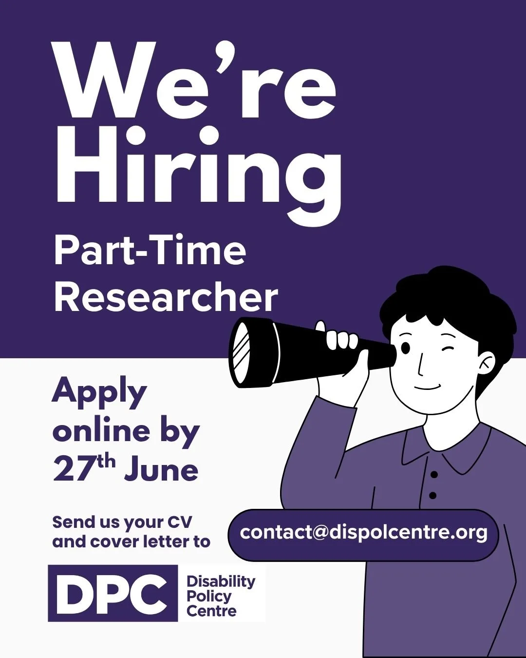 The Disability Policy Centre is hiring a Part-Time Researcher - Applications close 27th June 2025